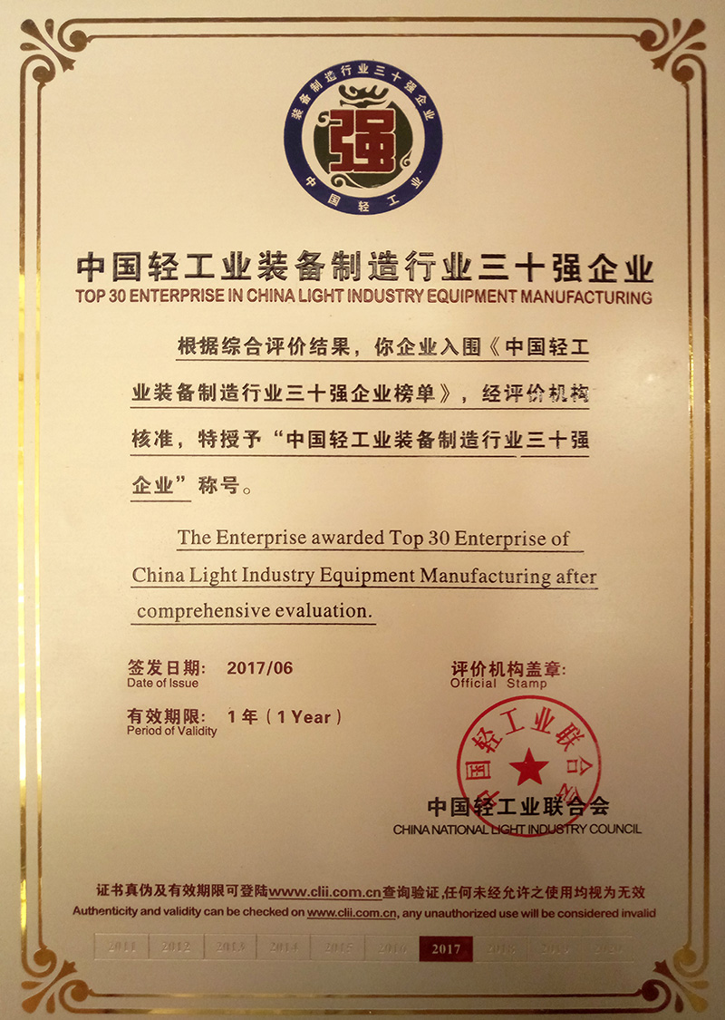 - Top 30 Enterprises in China's Light Industry Equipment Manufacturing Sector