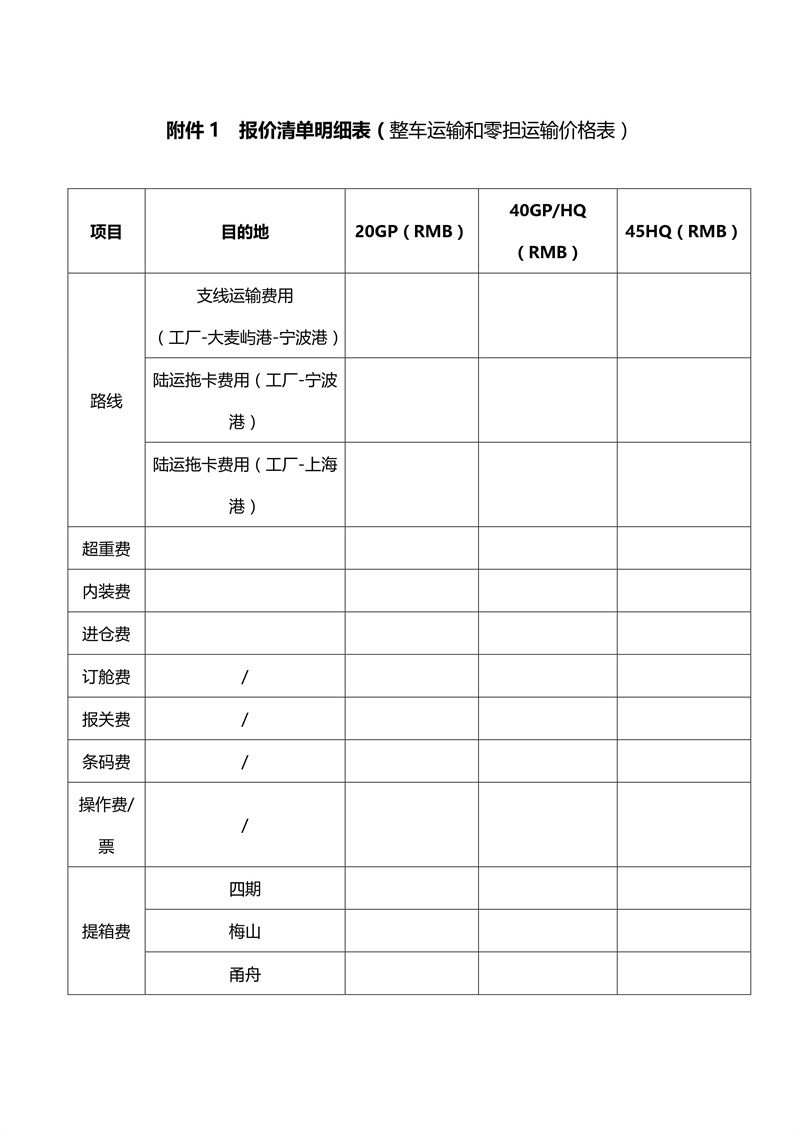 貨運(yùn)代理招標(biāo)書及其報(bào)價(jià)單模板